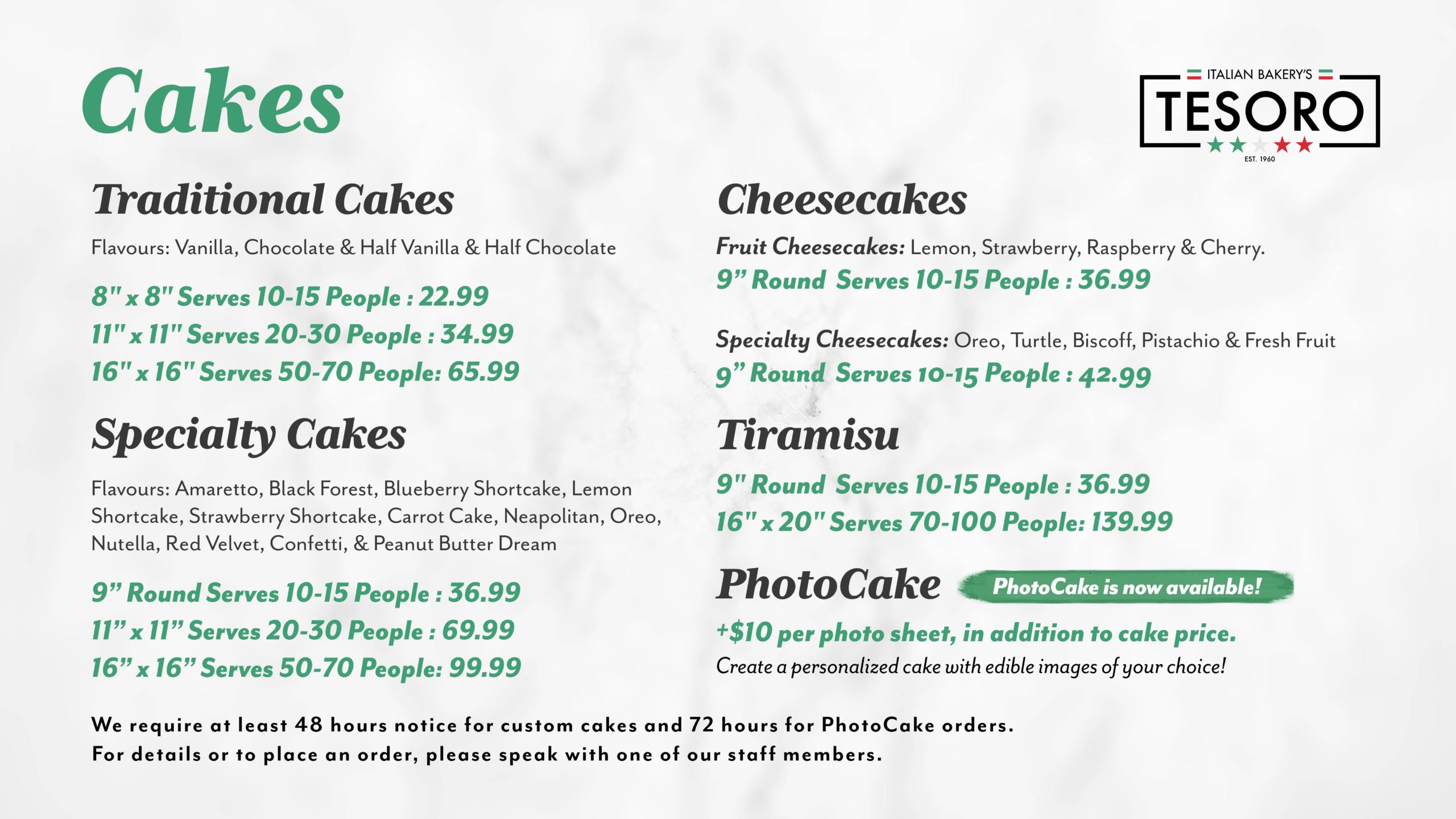 Celebrate your party like a true Italian with a traditional carne “meat” platter.Choose from six meats and varieties from Mortadella, Capicollo, Genoa Salami, Ham, and Turkey.