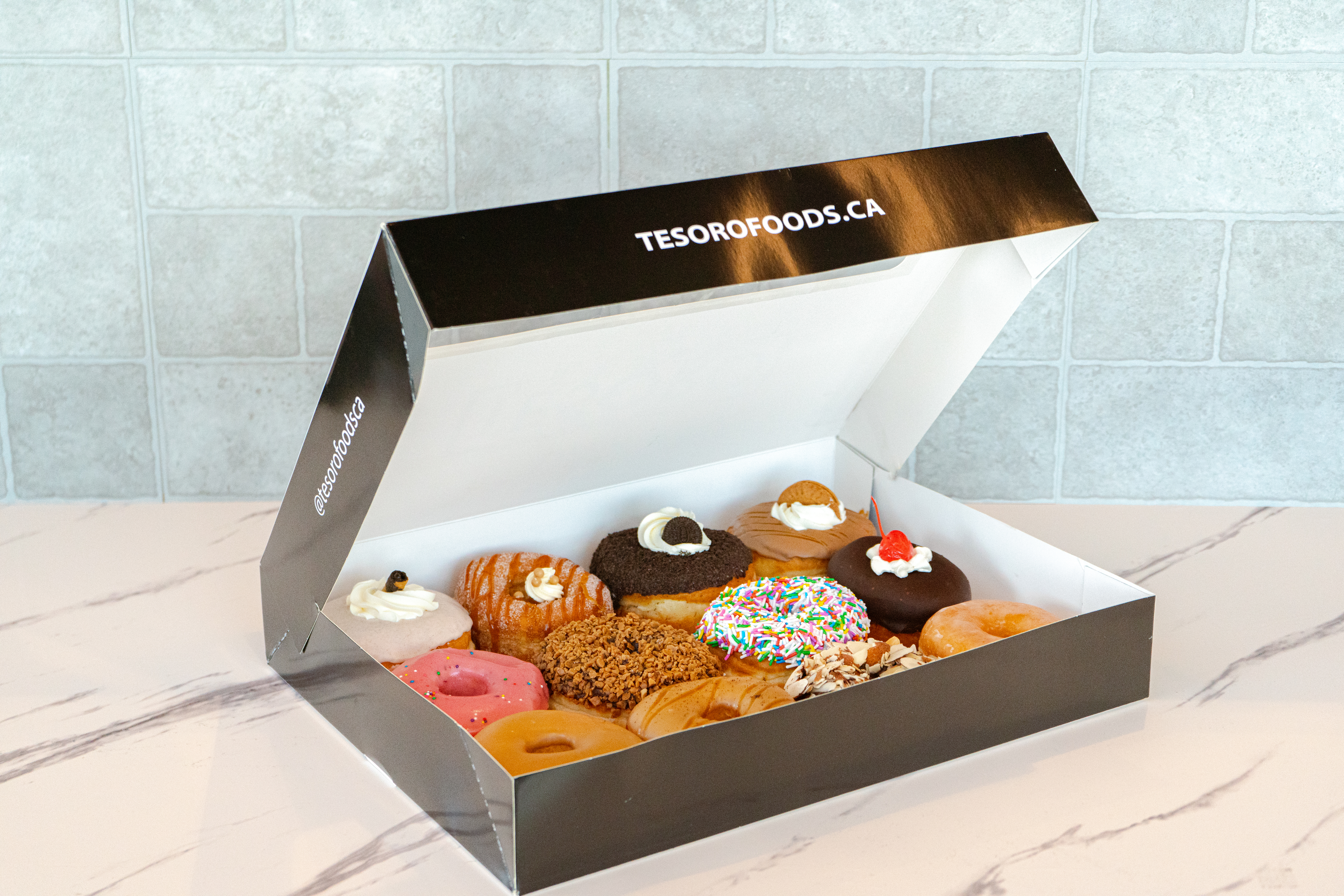 An assortment of our delicious donuts made fresh, in-house, daily. Choose from up to 12 different kinds.