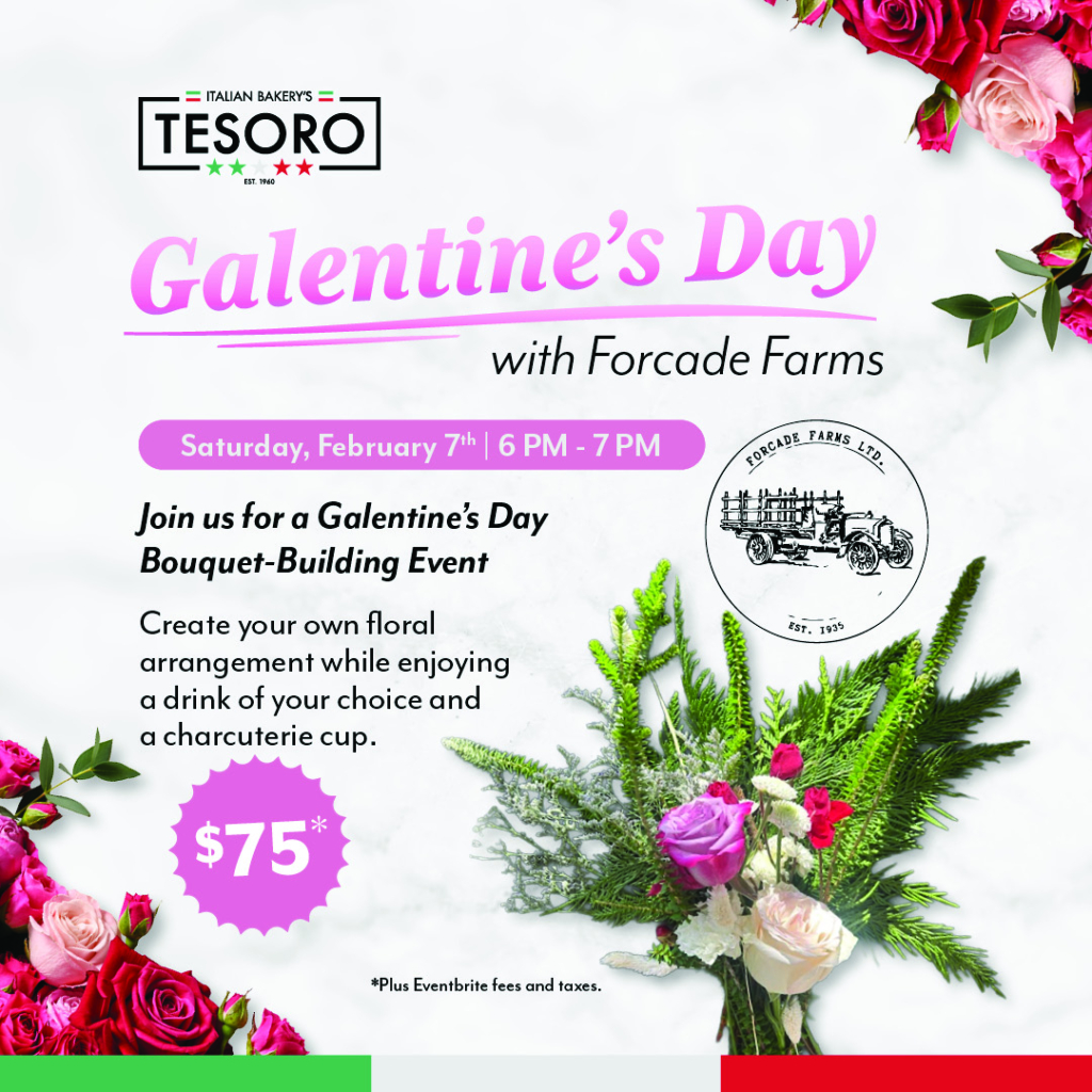 Grab your besties and join us at Tesoro on Saturday, February 7, from 6:00 – 7:00 PM for an evening of floral artistry with Forcade Farms! Whether you’re a seasoned DIYer or a total beginner, Danielle from Forcade Farms will guide you through building a stunning, hand-crafted bouquet to take home.Â