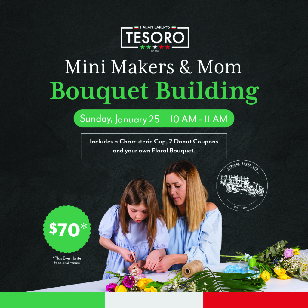 Join us at Tesoro on Sunday, January 25, from 10–11 AM for a morning of floral fun with Forcade Farms! This hands-on workshop is designed for moms and their “mini makers” to bond while building a beautiful bouquet together. All materials are provided, and each ticket covers one shared arrangement between parent and child—perfect for creating lasting memories and a stunning seasonal centerpiece.